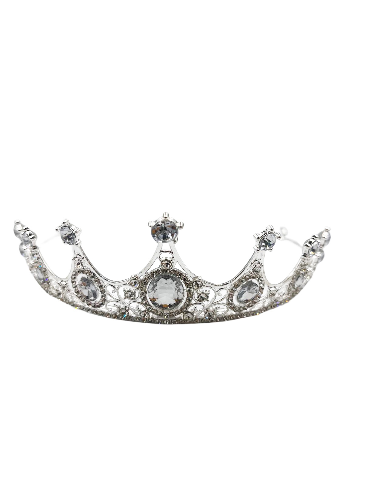Pasta Tacı Metal Taşlı Yarım Tur Lüks Gümüş