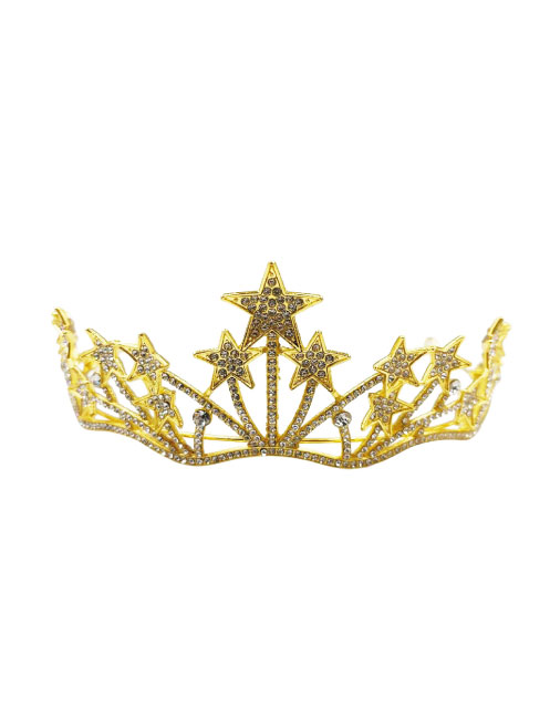 Pasta Tacı Metal Taşlı Yıldızlı Yarım Tur Lüks Altın