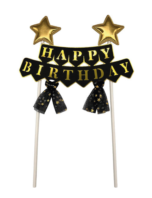 Pasta Üstü Çubuklu Happy Birthday Yıldızlı Tüllü Siyah