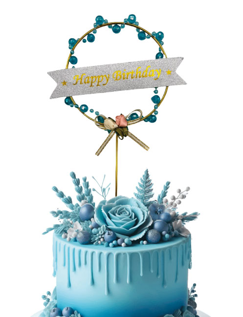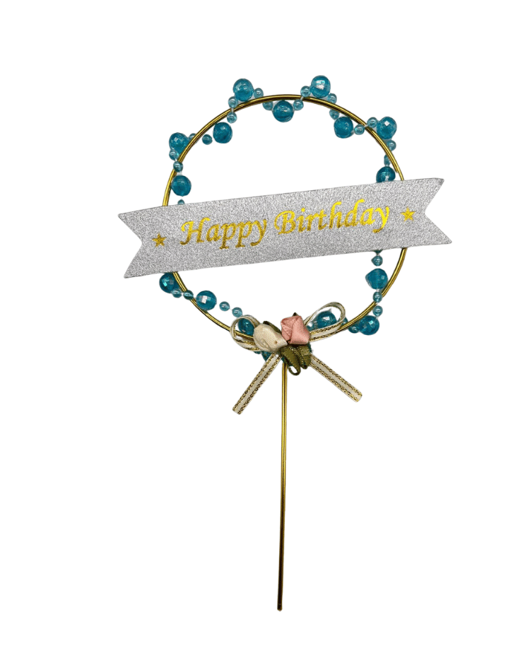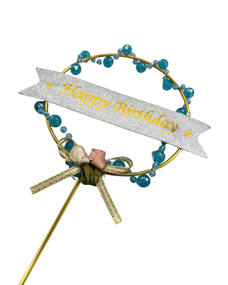 Pasta Üstü Çubuklu Metal Süs Boncuklu Mavi