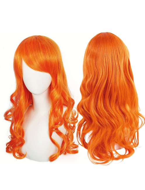 Peruk Saç Uzun Kahküllü 50 Cm Turuncu