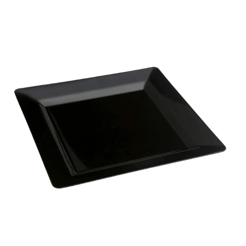 Plastik Porselen Görünümlü Kare Siyah Tabak 18 Cm 10 Parça