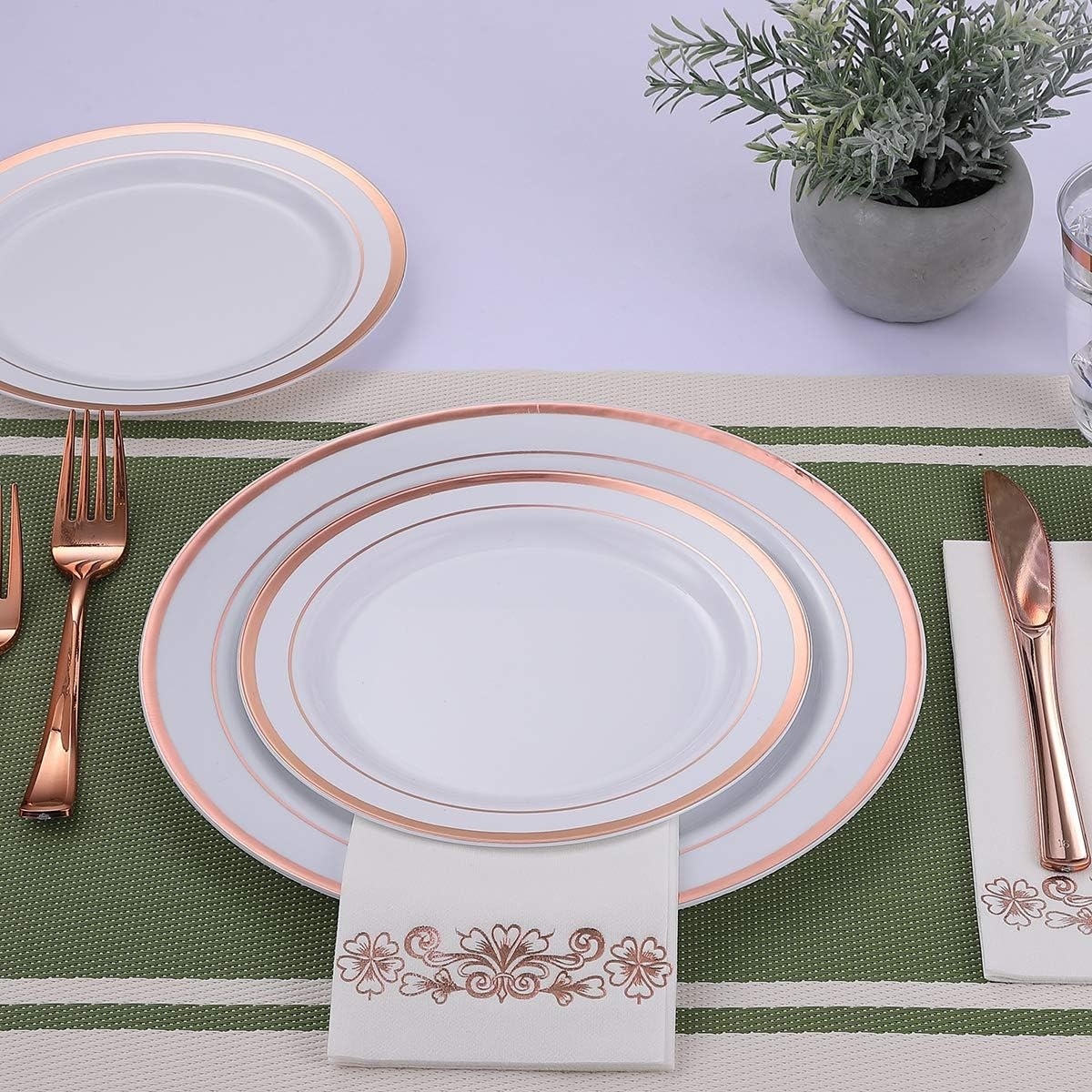 Porselen Görünümlü Beyaz Tabak Rose Gold Varaklı 26 Cm 12 Parça