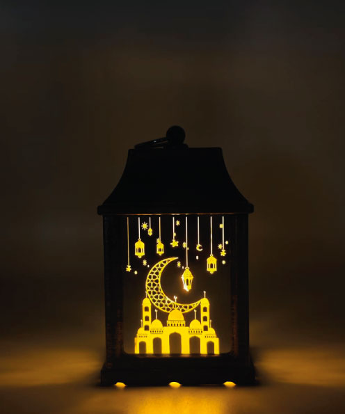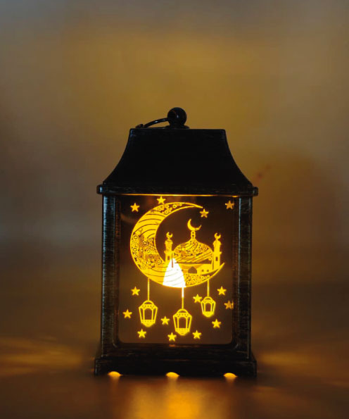 Ramazan Ledli Fener Kare Aynalı Ay Model 10 Cm Altın