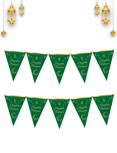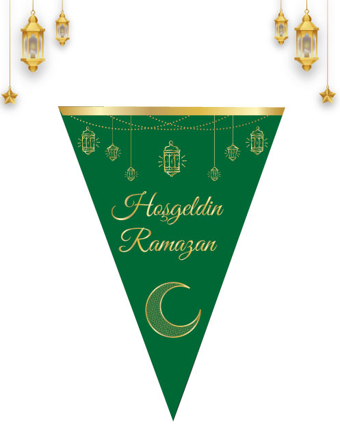 Ramazan Temalı Bayrak Flama Üçgen Hoşgeldin Ramazan Yeşil