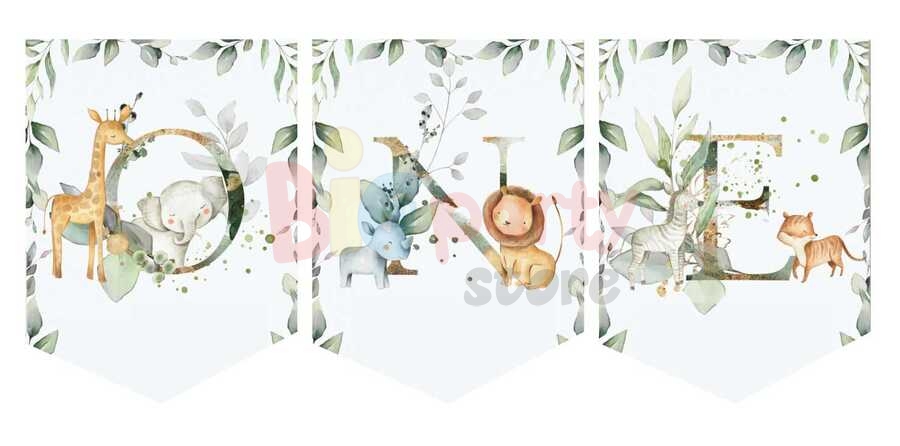 Kağıt Banner One Flama Safari Temalı Baby Animal