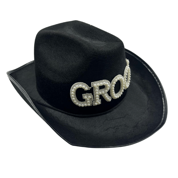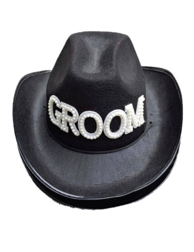 Şapka Kovboy Siyah Groom Taşlı Lüx