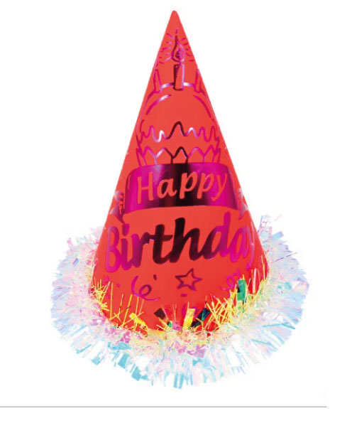 Sim Süslü Neon Şapka Renkli Varaklı Happy 25 Cm Kırmızı