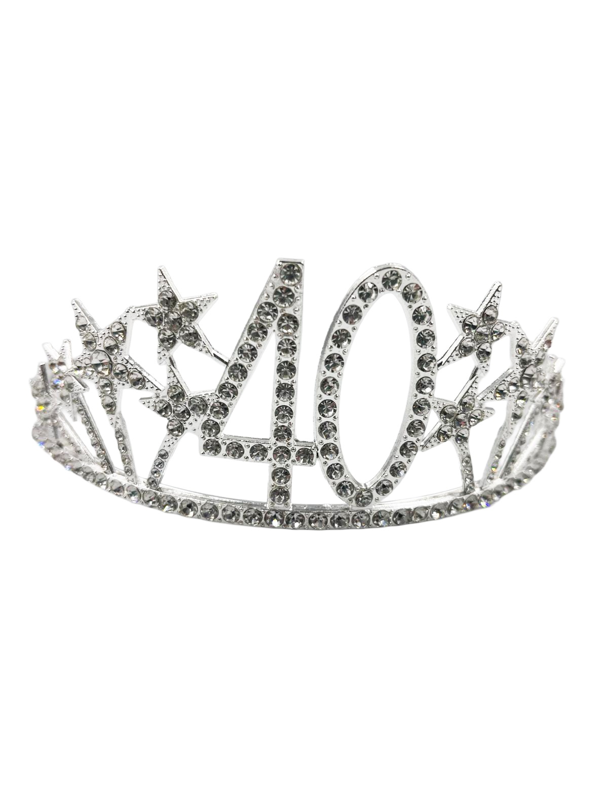 Taç Metal Taşlı 40 Yaş Yıldızlı Lüks Gümüş