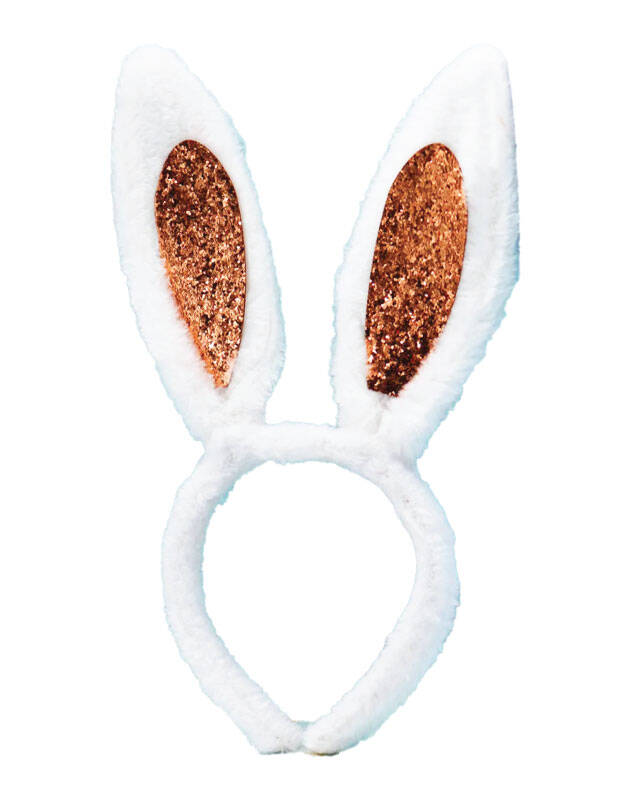 Taç Tavşan Kulak Peluş Rose Gold Simli Beyaz