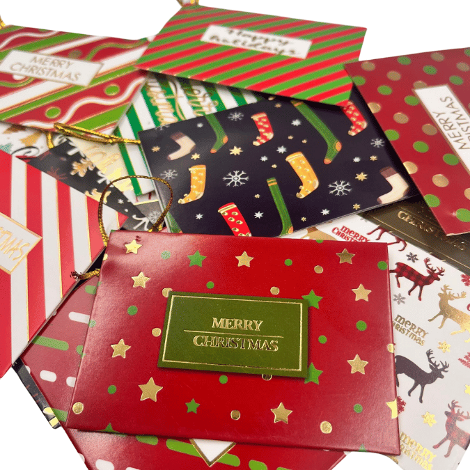 Yılbaşı Tebrik Kartı Kraft Kırmızı Varaklı Baskılı Temalar 128 Parça