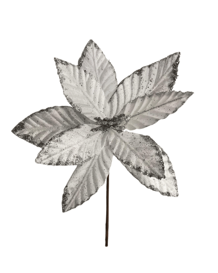 Yılbaşı Çam Dalı Atatürk Çiçeği 9 Yaprak Gümüş Simli 30 Cm