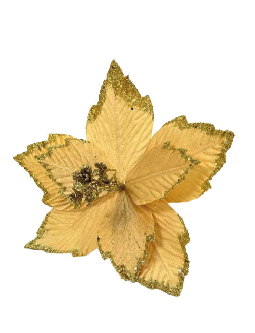 Yılbaşı Çam Dalı Atatürk Çiçeği Altın Simli 8 Yaprak 25 Cm