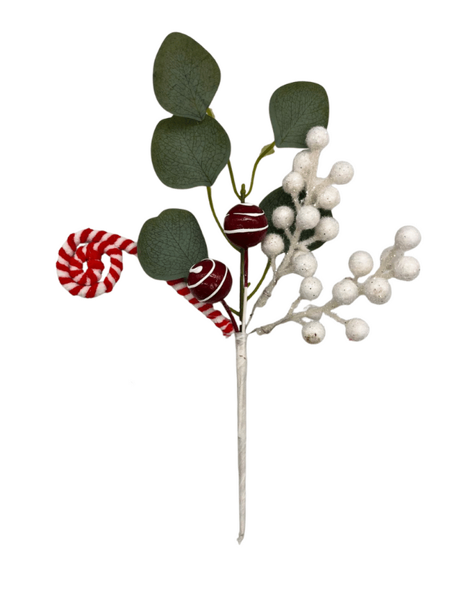 YILBAŞI ÇAM DALI BEYAZ BERRY SOSYETE ŞEKERLİ YAPRAKLI MODEL 30 CM