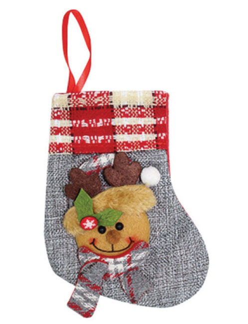 Yılbaşı Çorabı Hasır Kumaş Geyik Figürlü Küçük