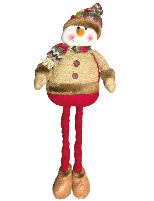 Yılbaşı Dekoratif Kardan Adam Jüt Kostümlü Ayakları Uzayan Lüks