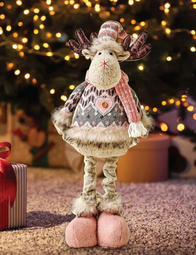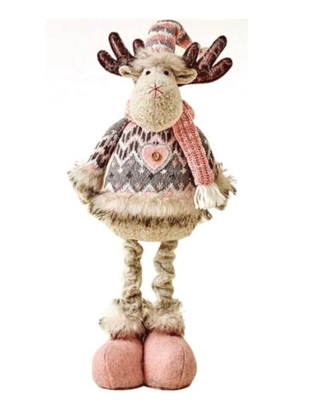 Yılbaşı Dekoratif Geyik Pembe Kostümlü Ayakları Uzayan 30-50 Cm