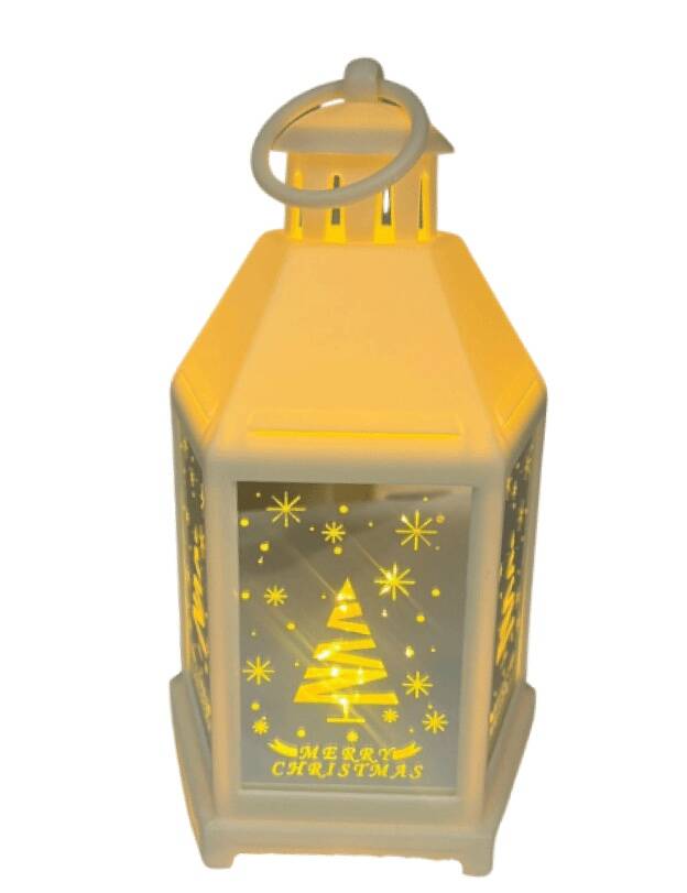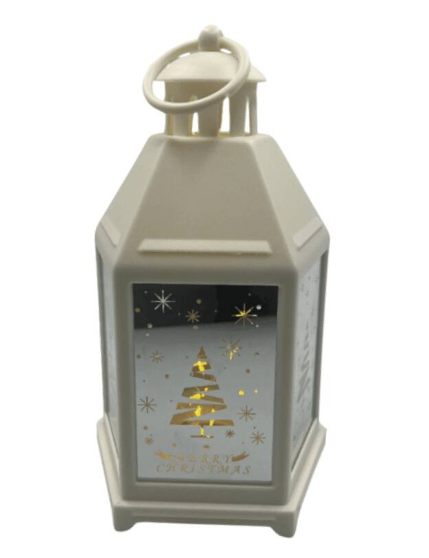 Yılbaşı Ledli Fener Kare Aynalı Ağaçlı Model 10 Cm Beyaz