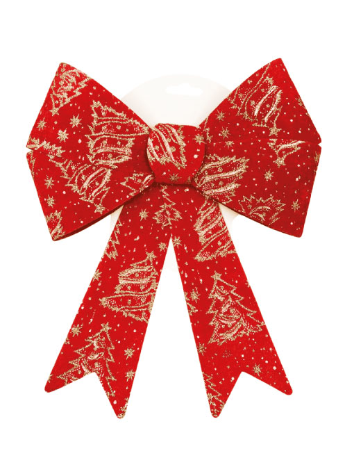 Yılbaşı Fiyonk Kadife Simli Baskılı 30 Cm Kırmızı