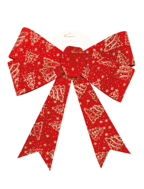 Yılbaşı Fiyonk Kadife Simli Baskılı 35 Cm Kırmızı