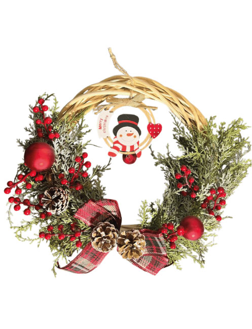 Yılbaşı Kapı Süsü Bambu Çelenk Süslü Fiyonklu Lüks 30 cm