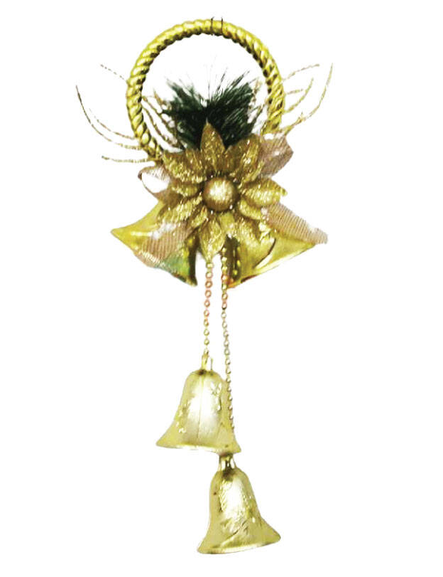 Yılbaşı Kapı Süsü Halkalı Çanlı Çiçekli Altın 30 cm