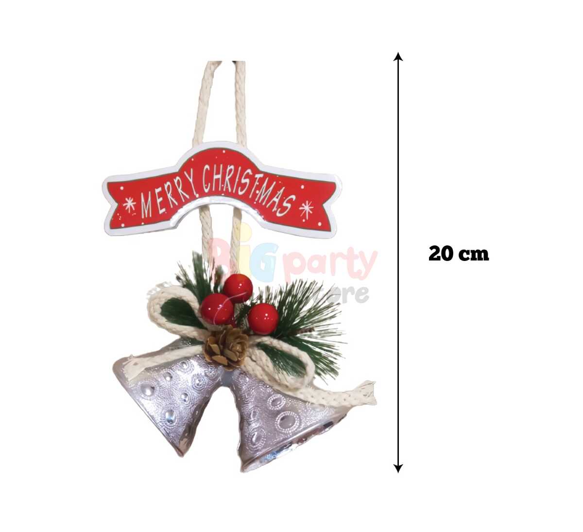 Yılbaşı Kapı Süsü Merry Chrismas Gümüş Çanlı 20 cm