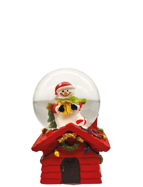 Yılbaşı Kar Küres Ev Model 7 Cm Kardan Adam Kırmızı Şapkalı