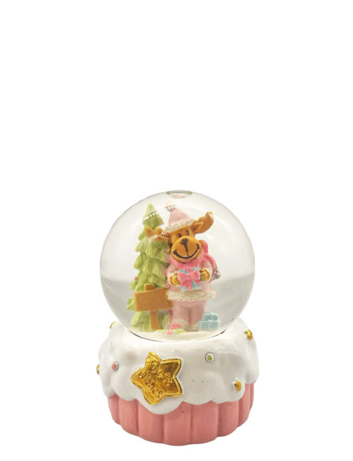 Yılbaşı Kar Küresi Pembe Model 7 Cm Ren Geyiği