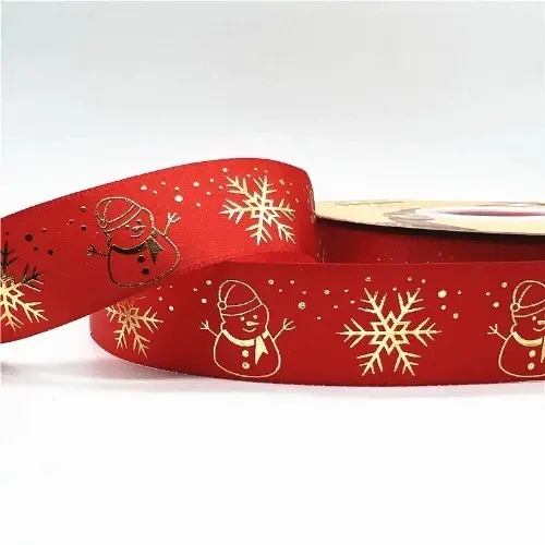 Yılbaşı Kurdele Varaklı Baskılı 3 Cm 45 Metre Kırmızı