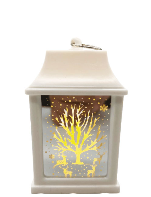 Yılbaşı Ledli Fener Kare Aynalı Ağaçlı Model 10 Cm Beyaz