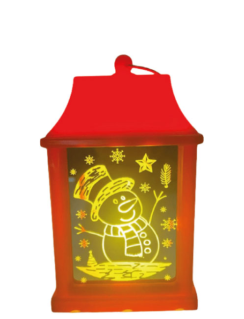 Yılbaşı Ledli Fener Kare Aynalı Kardan Adam Model 10 Cm Kırmızı