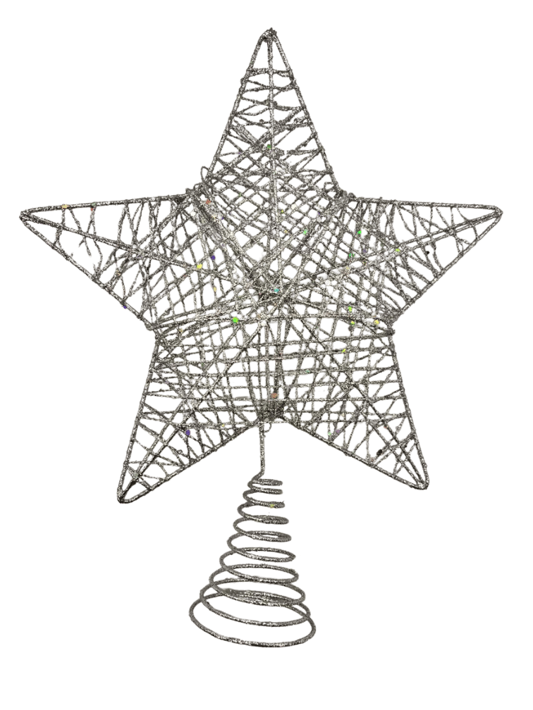 Yılbaşı Tepelik Çam Ağacı Çizgili Yıldız Gümüş 15 cm
