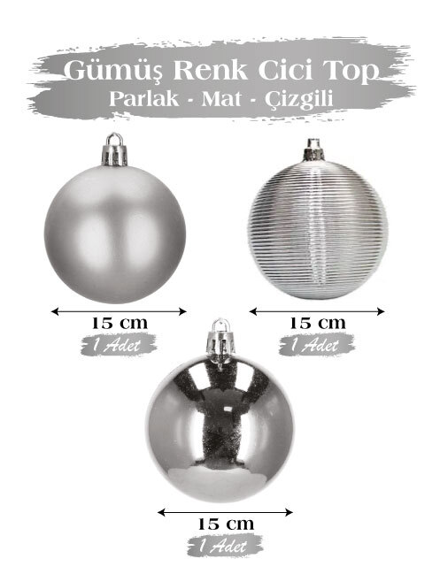 Yılbaşı Top Süs 15 Cm 3 Parça Mat Parlak Çizgili Gümüş