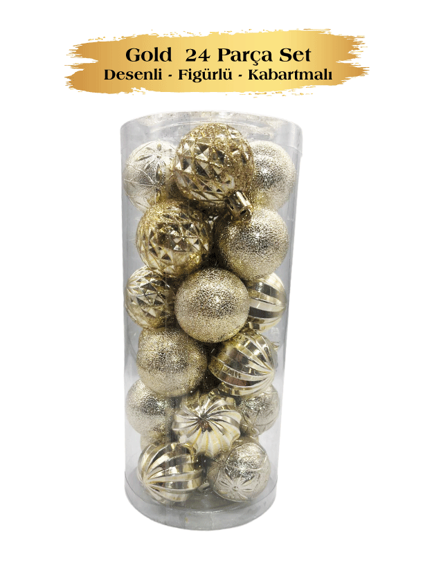 Yılbaşı Top Süs 4 Cm 24 Parça Set Desenli Altın