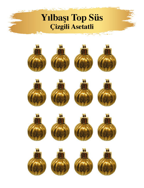 Yılbaşı Top Süs 3 cm Çizgili Altın Asetatlı 12 Parça