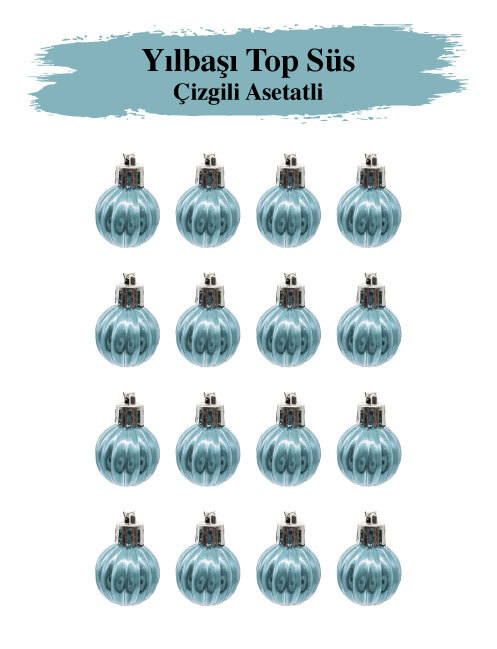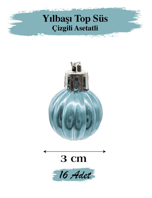 YILBAŞI TOP SÜS 3 CM 16 PARÇA ÇİZGİLİ ASETATLI