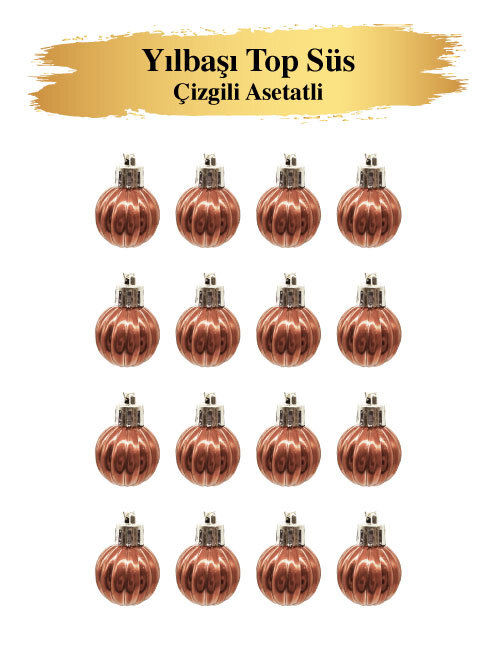 YILBAŞI TOP SÜS 3 CM 16 PARÇA ÇİZGİLİ ASETATLI