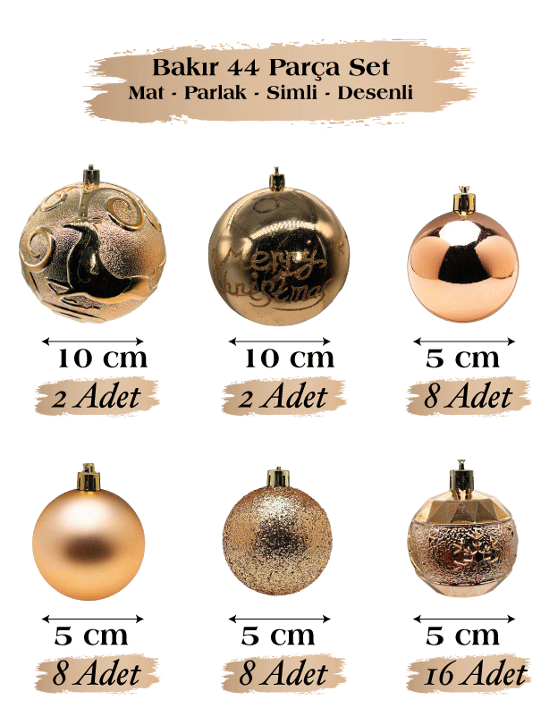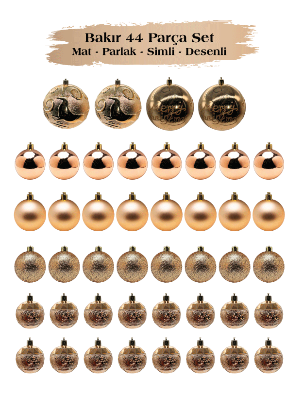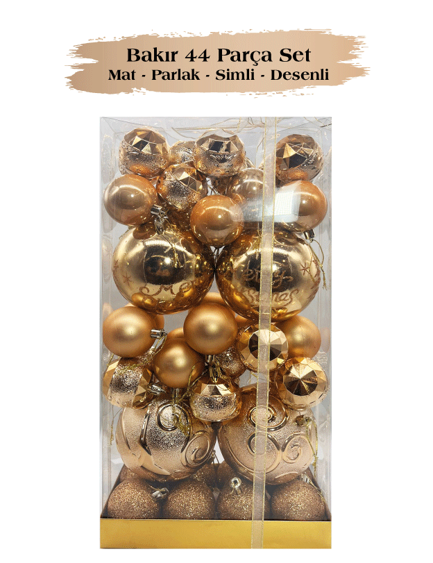 Yılbaşı Top Süs 44 Parça Set Bakır
