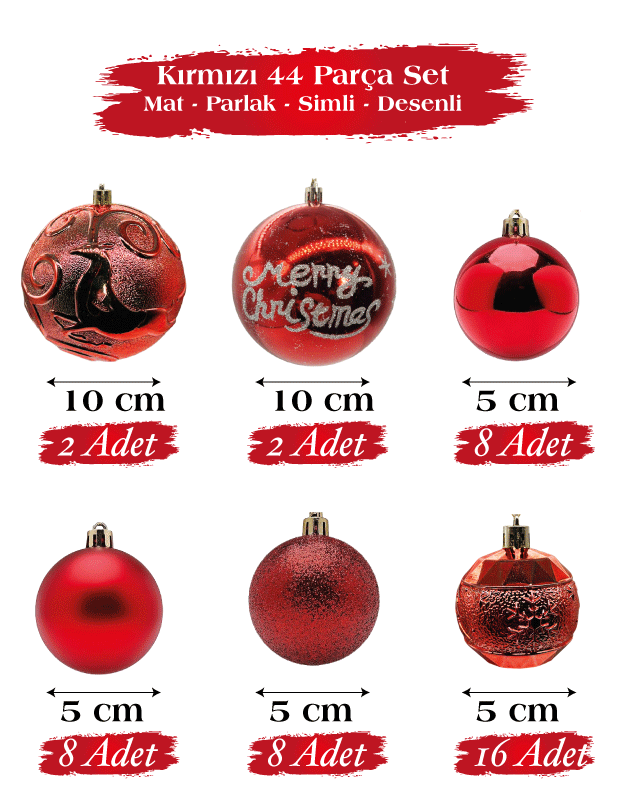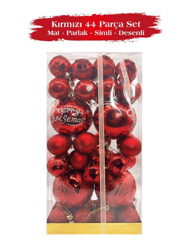 Yılbaşı Top Süs 44 Parça Set Kırmızı