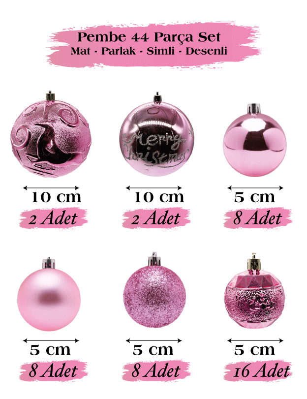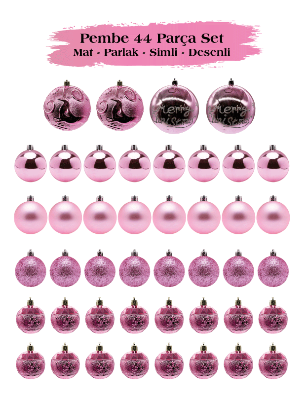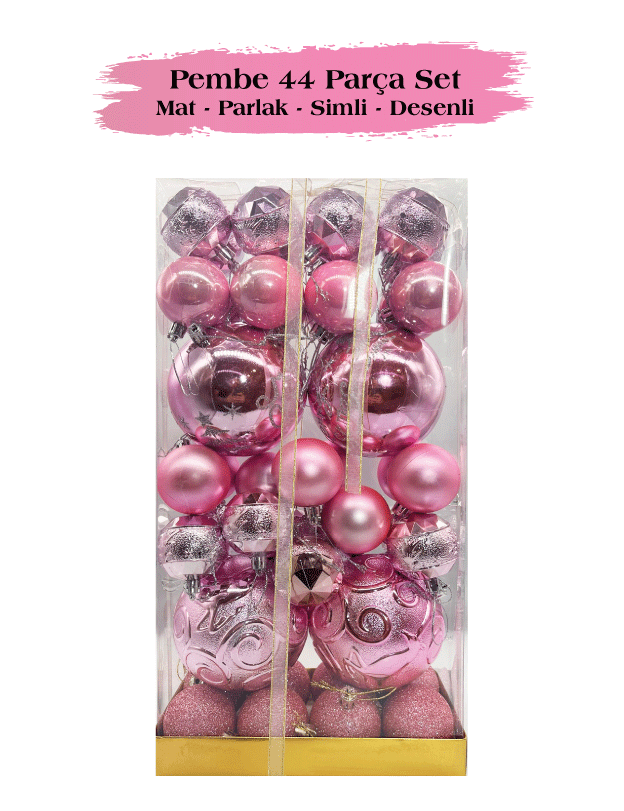 Yılbaşı Top Süs 44 Parça Set Pembe