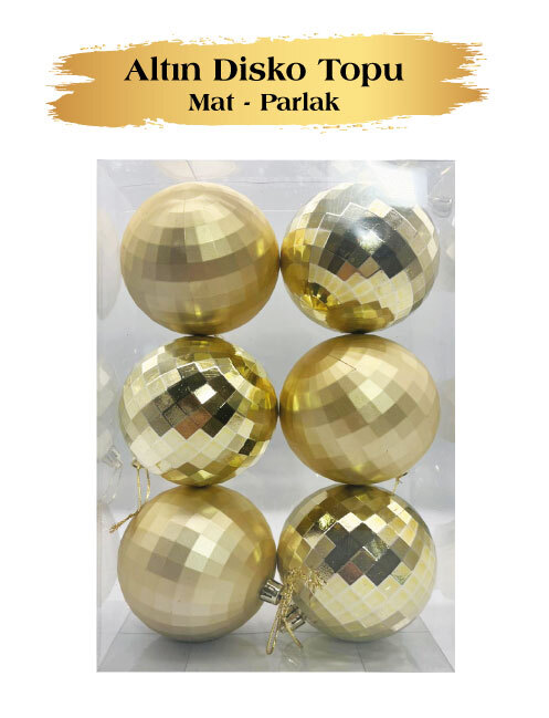 Yılbaşı Top Süs 6 cm 6 Parça Mat Parlak Disko Topu Altın