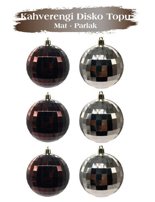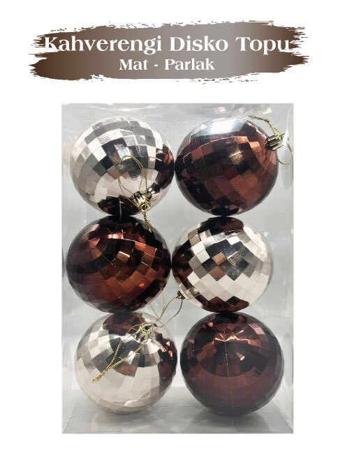 Yılbaşı Top Süs 6 cm 6 Parça Mat Parlak Disko Topu Kahverengi