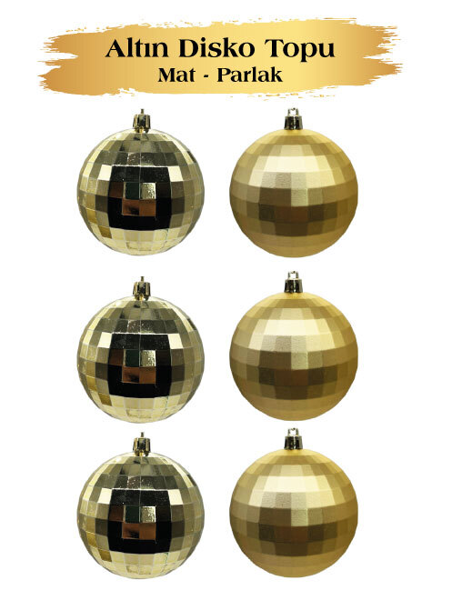 Yılbaşı Top Süs 8 cm 6 Parça Mat Parlak Disko Topu Altın