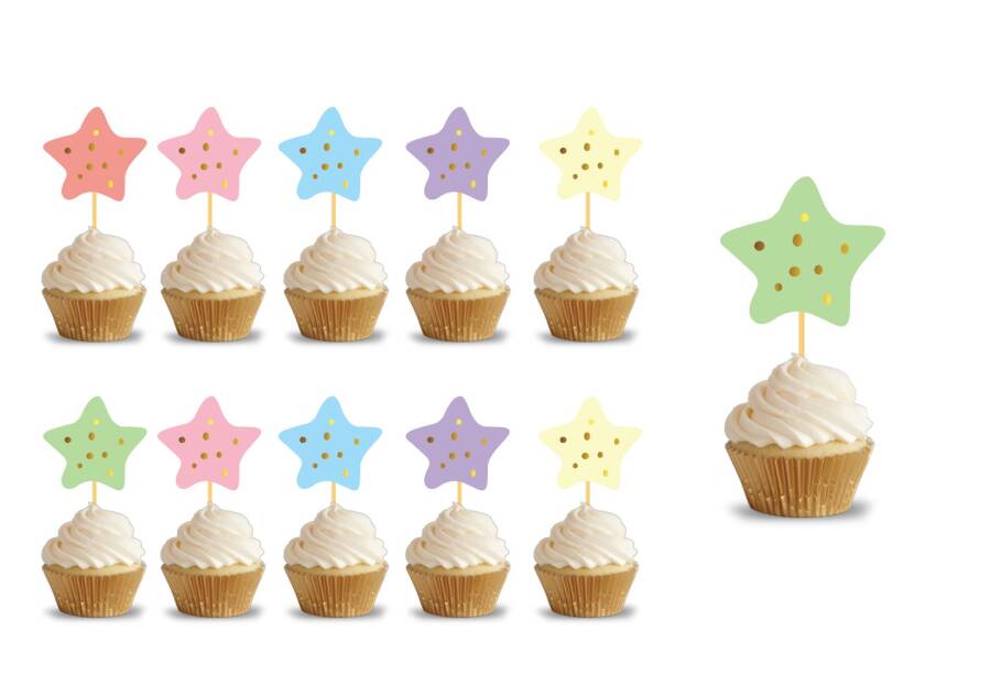 Yıldız Temalı Makaron Renkli Soft Parti Kürdanı 10'Lu